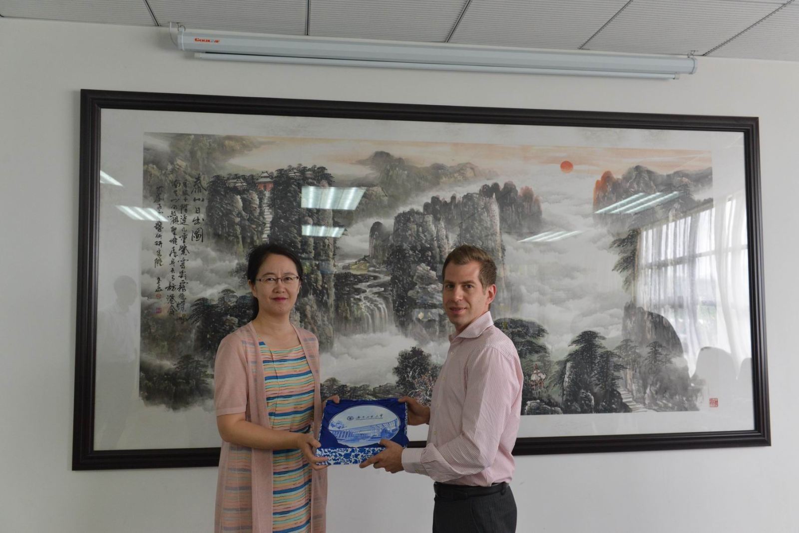 张力对Nick Ducoff一行的来访表示热烈的欢迎,她向客人介绍了我校的基本情况,并重点介绍了我校在建设高水平大学中的国际化办学情况,包括学生长短期海外交流、涉外办学、师资培养和海外人才引进等。她希望通过此次交流,两校能够在学生交流、人才引进、骨干教师培养、合作科研等方面开展合作。